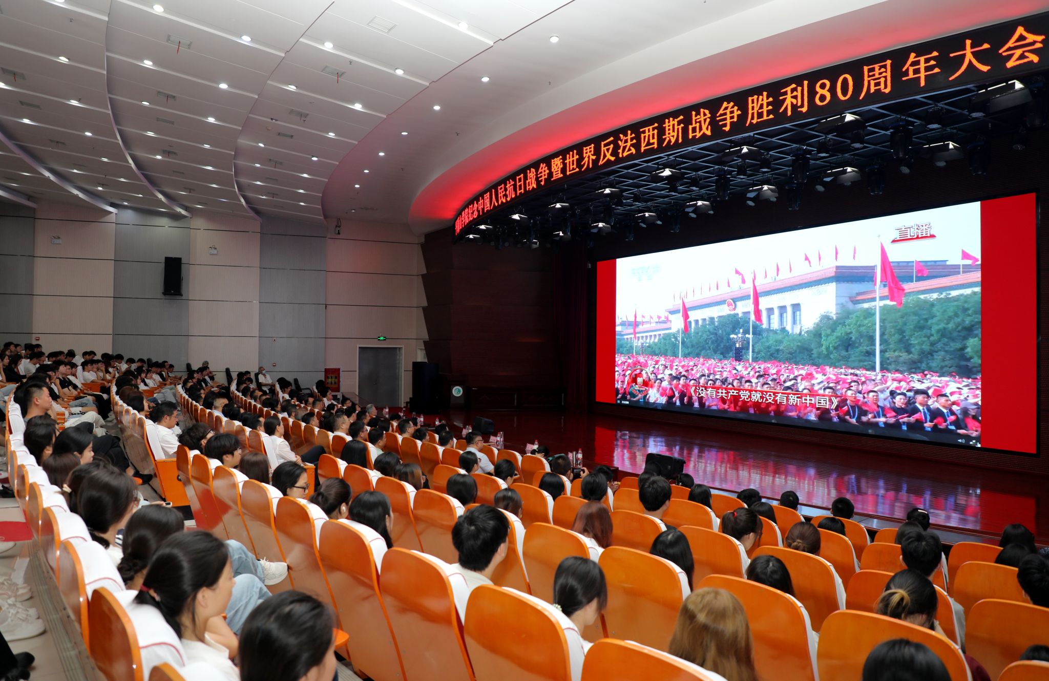 升旗仪式结束后,我校组织全校师生集体观看了纪念中国人民抗日战争暨世界反法西斯战争胜利80周年大会,并围绕习近平总书记在纪念大会上的重要讲话精神、爱国主义、国防安全等内容开展了主题研讨,激发广大师生的爱国情怀与奋斗精神,引导青年师生传承和弘扬伟大抗战精神,坚定理想信念、厚植家国情怀、勇担历史使命。